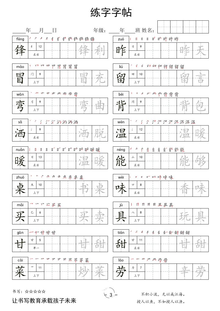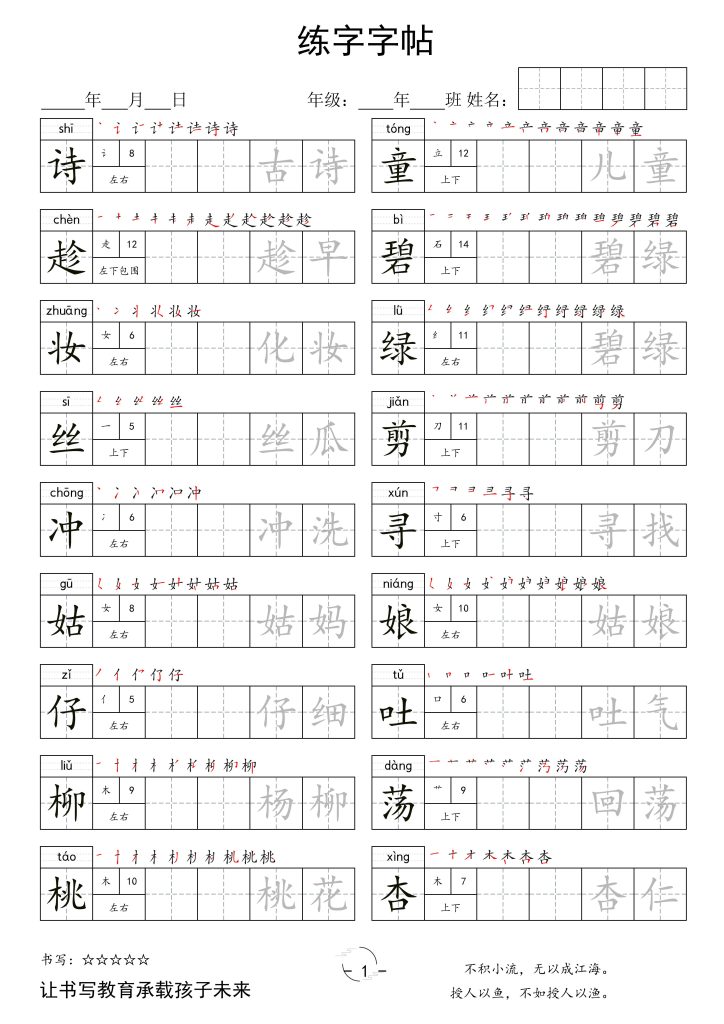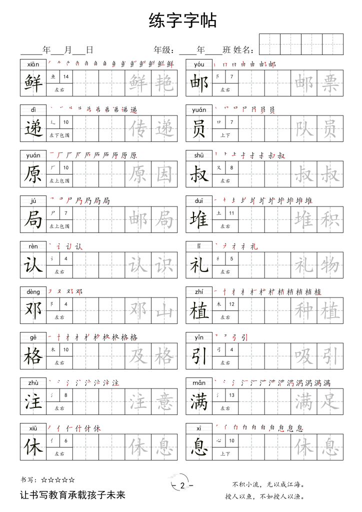 二年级语文下册新版字帖