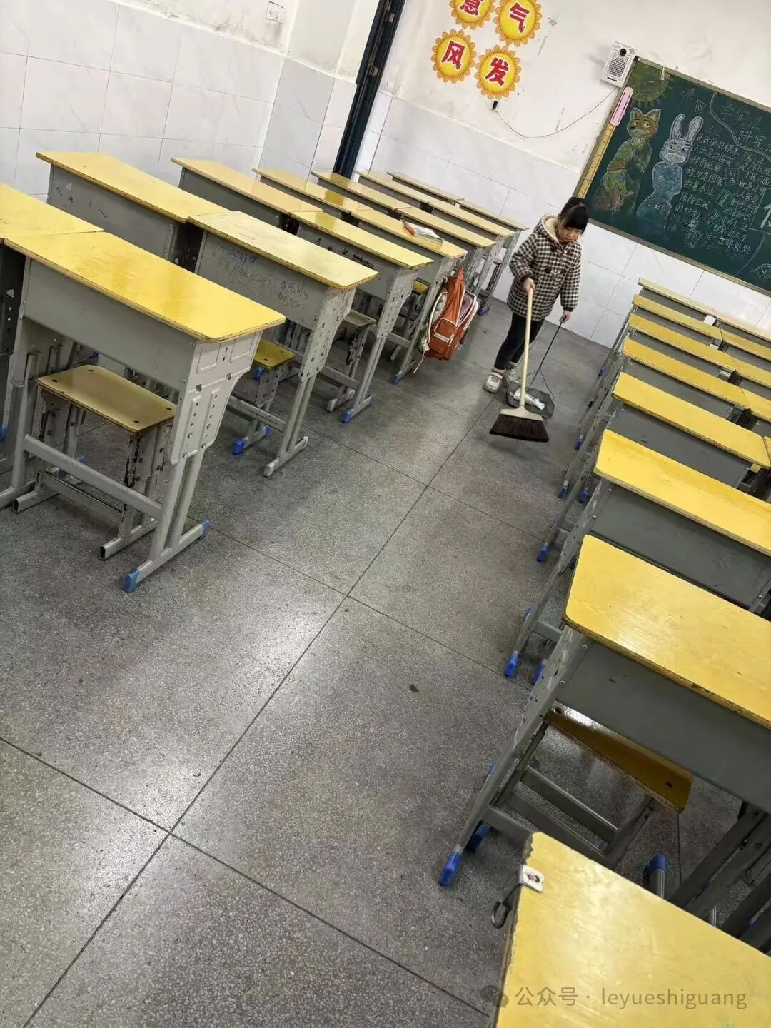 每天早上最愉快的事情,莫过于看到桌椅被摆得整整齐齐,地面被扫得干干净净的。