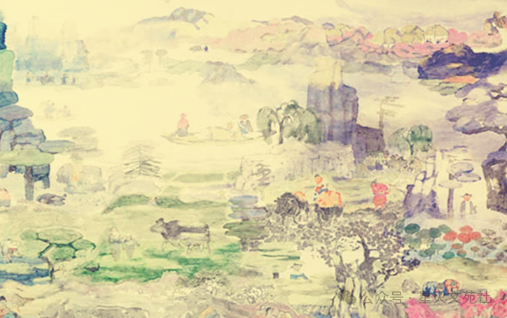 近处,水中露出嶙峋岩石,如岛如屿(石矶);那飘流着片片落花的溪上,有渔船在轻摇,景色清幽明丽。“石矶西畔问渔船”,一个“问”字,诗人也自入画图之中了,使读者从这幅山水画中,既见山水之容光,又见人物之情态。诗人伫立在古老的石矶旁,望着溪上飘流不尽的桃花瓣和渔船出神,恍惚间,他似乎把眼前的渔人当作当年曾经进入桃花源中的武陵渔人。“问渔船”三字,逼真地表现出这种心驰神往的情态。他问得天真有趣:“桃花尽日随流水,洞在清溪何处边?”他似乎真的认为这“随流长”的桃花瓣是由桃花源流出来的,因而由桃花而联想起进入桃源之洞。最后一句问讯渔人的话,深深表达出诗人向往世外桃源的急切心情。然而桃花源本是虚构的,诗人当然也知道渔人无可奉答,他是明知故问,这也隐约地透露出诗人感到理想境界渺茫难求的怅惘心情。诗到此戛然止笔,而末句提出的问题却引起人们种种美妙的遐想。诗人的画笔,玲珑剔透,由远而近,由实及虚,不断地变换角度,展现景物,但又不作繁腻的描写,淡淡几笔,略露轮廓,情蓄景中,趣在墨外,就像一幅写意画,清远含蓄,耐人寻味。