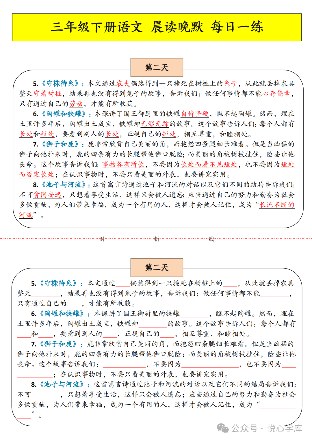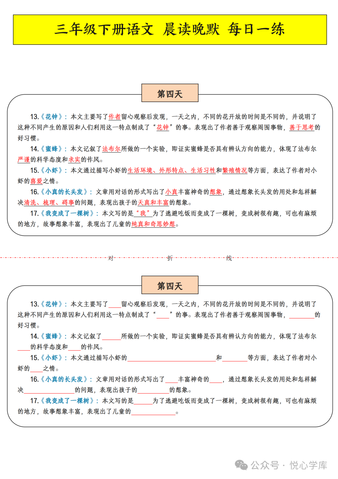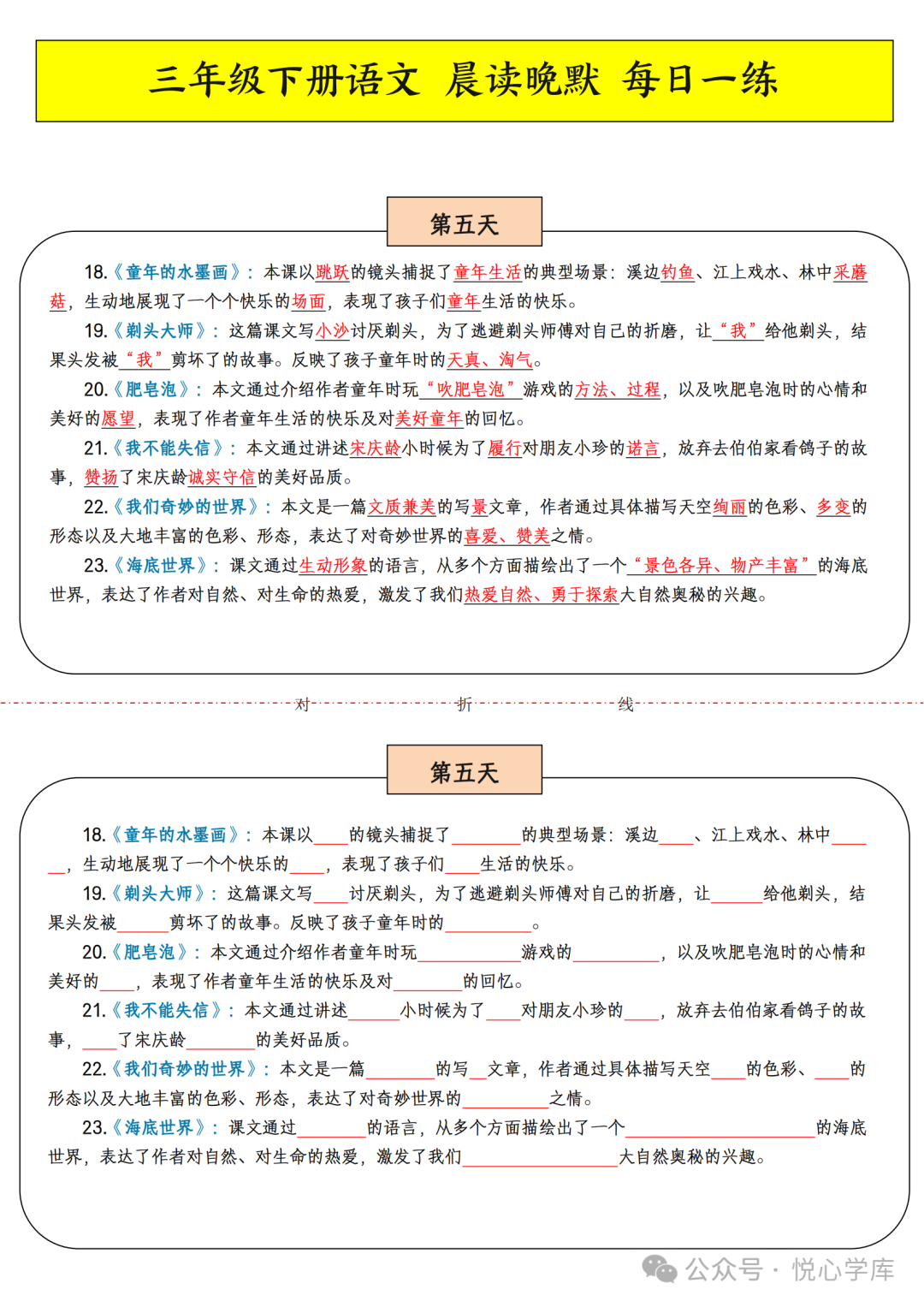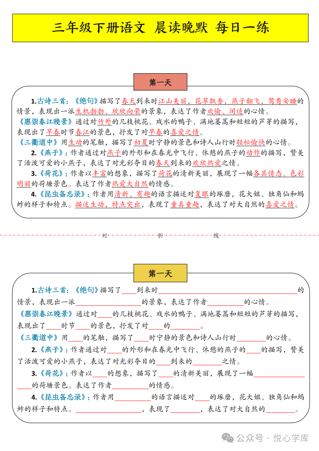 三年级下册语文晨读晚默