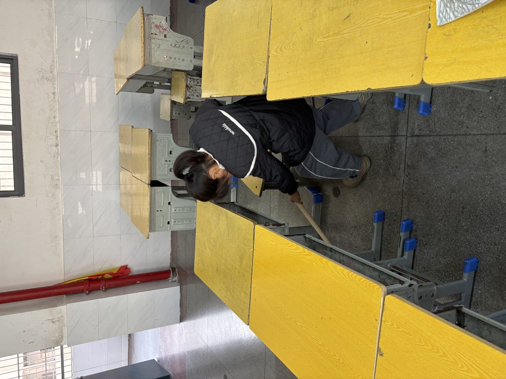 这个星期的早上,我又连续两次看到了她娇小却勤劳的身影。她跟高文欣、涂雨萱同学一起,不仅把地面扫得干干净净,还把桌子凳子摆得整整齐齐。我又如何不想着用文字来记录下这份美好!